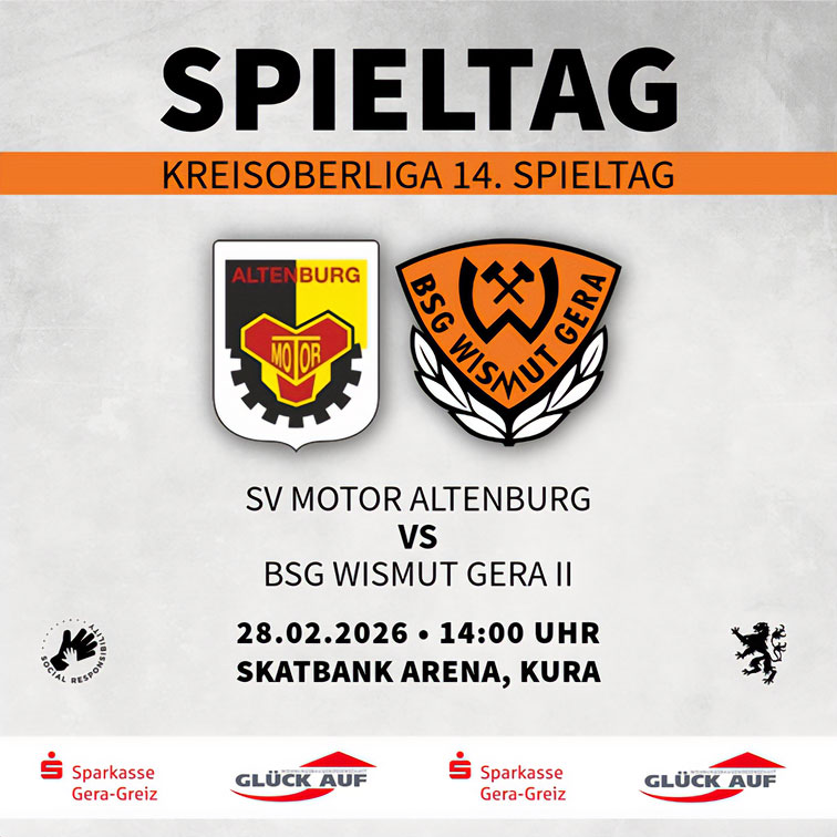 Samstag, 14:00 Uhr, Kunstrasen Skatbankarena Altenburg